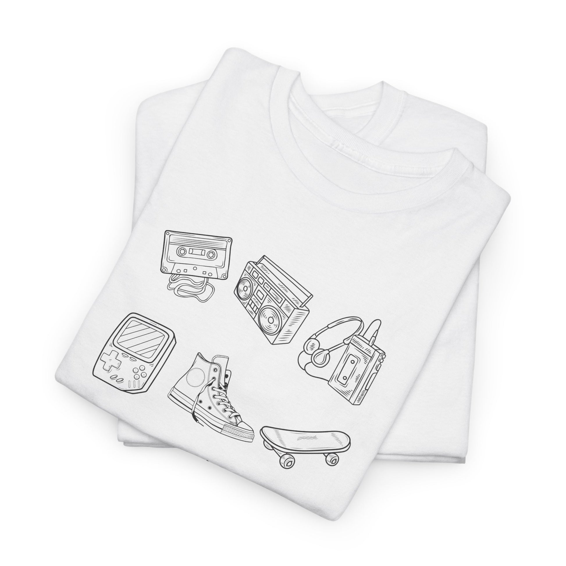 Relive the glory days of the 90s with this stylish and nostalgic design featuring classic icons from the past, like the Walkman, VHS tape, skateboard, boombox, and more! This unisex heavy cotton tee is more than a shirt—it’s a wearable tribute to the best decade of all time. Perfect for 90s kids, retro enthusiasts, and anyone who loves vintage vibes.